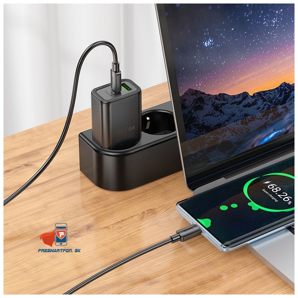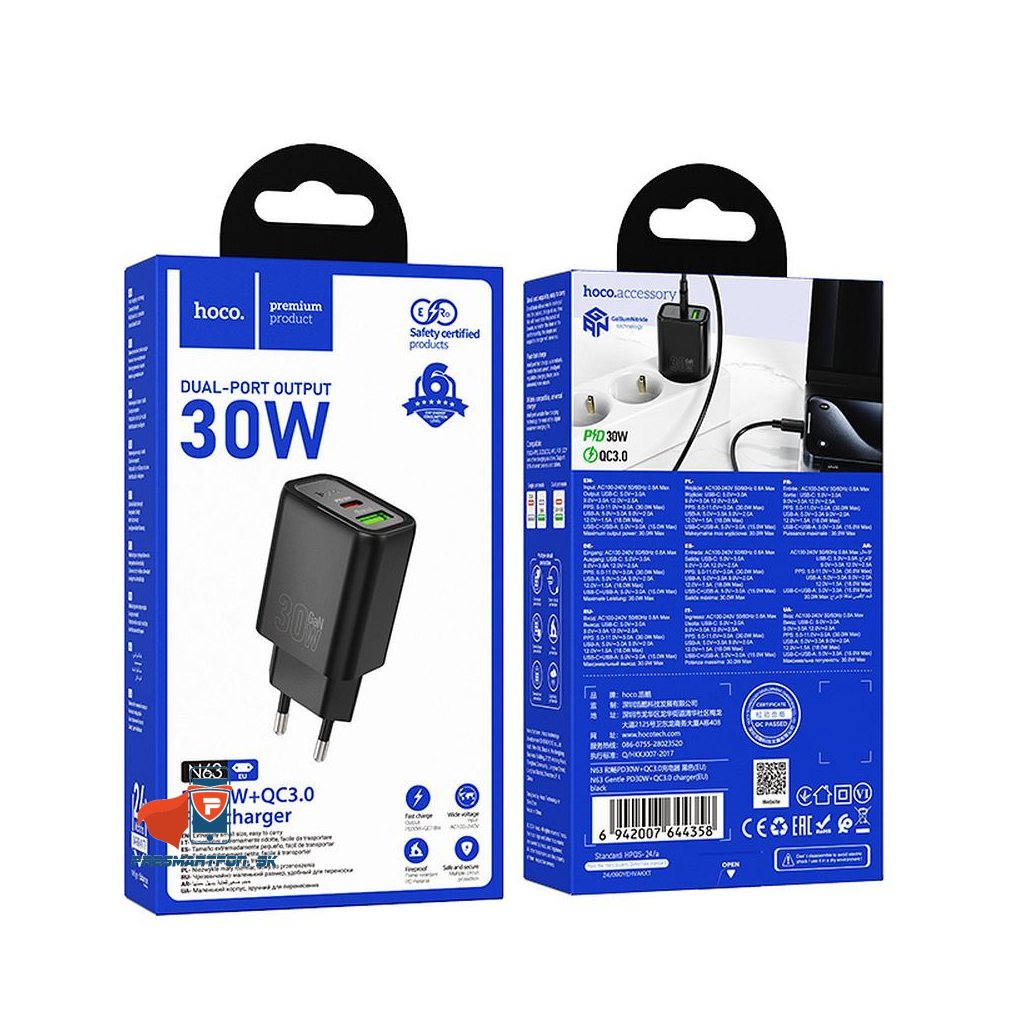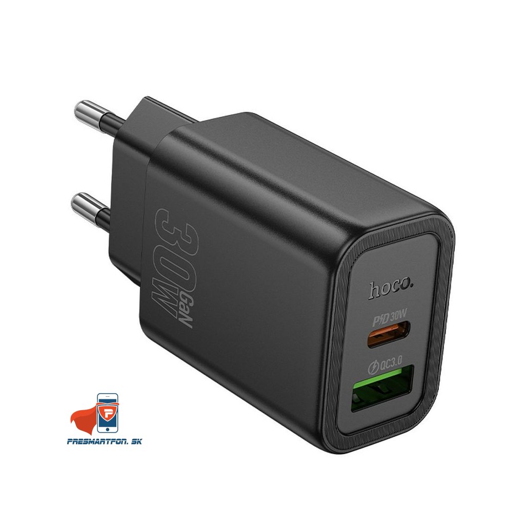 Hoco USB A + USB C QC3.0 PD 3A 30W N63 telefón nástenná nabíjačka, čierna