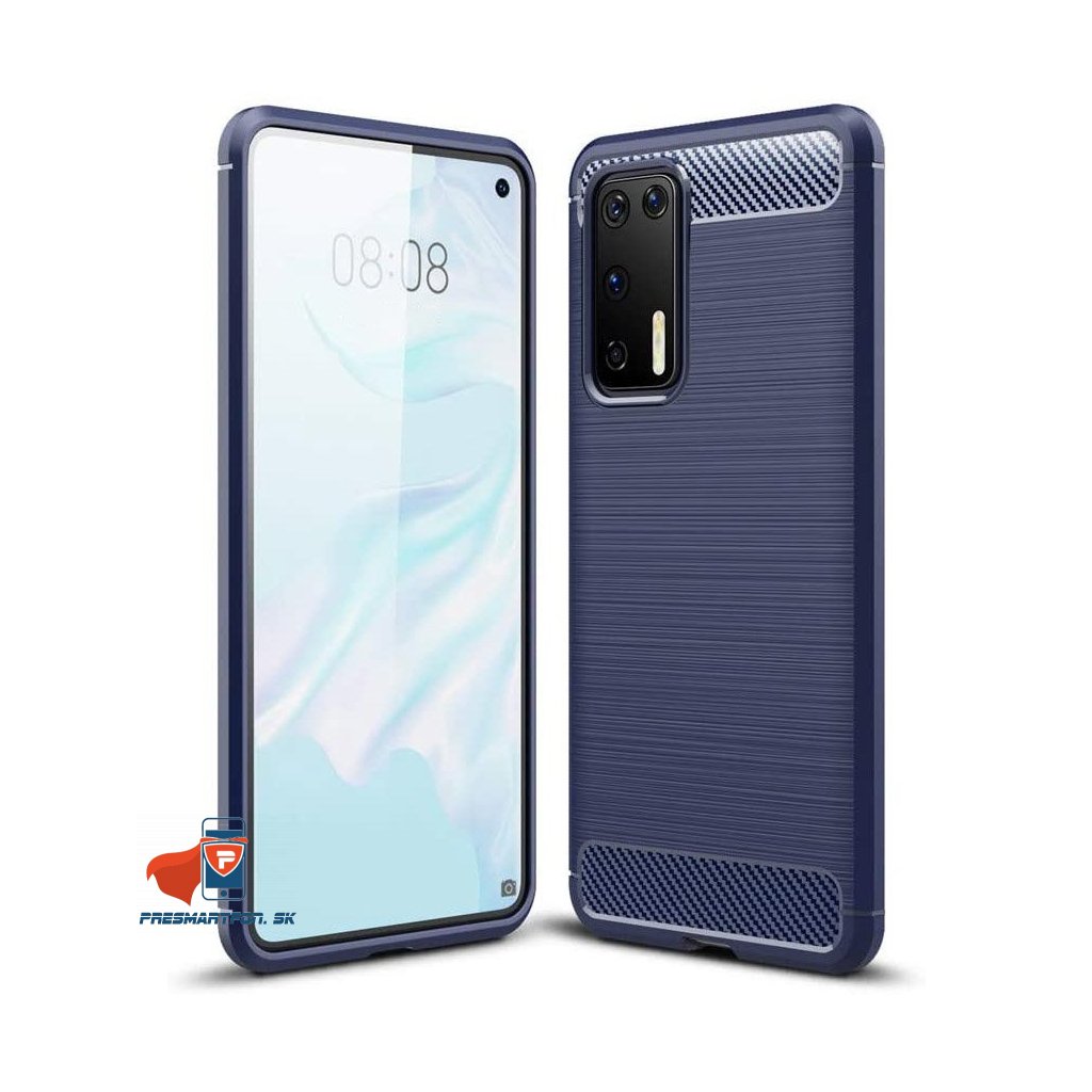 Zadné ochranné puzdro pre Huawei P40 v modrej farbe zaujme karbónovým vzorom, ktorý pôsobí elegantne a zároveň maskuje drobné známky používania.