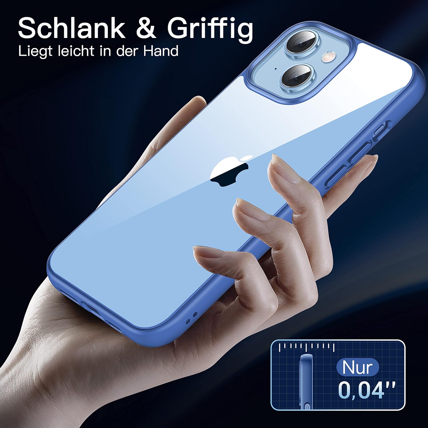 - iPhone 13 / 14 zadné púzdro nežltnúce, priehľadné s modrým lemom