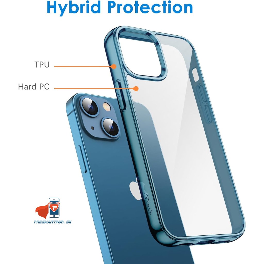 iPhone 13 Mini zadné púzdro nežltnúce, priehľadné s modrým lemom
