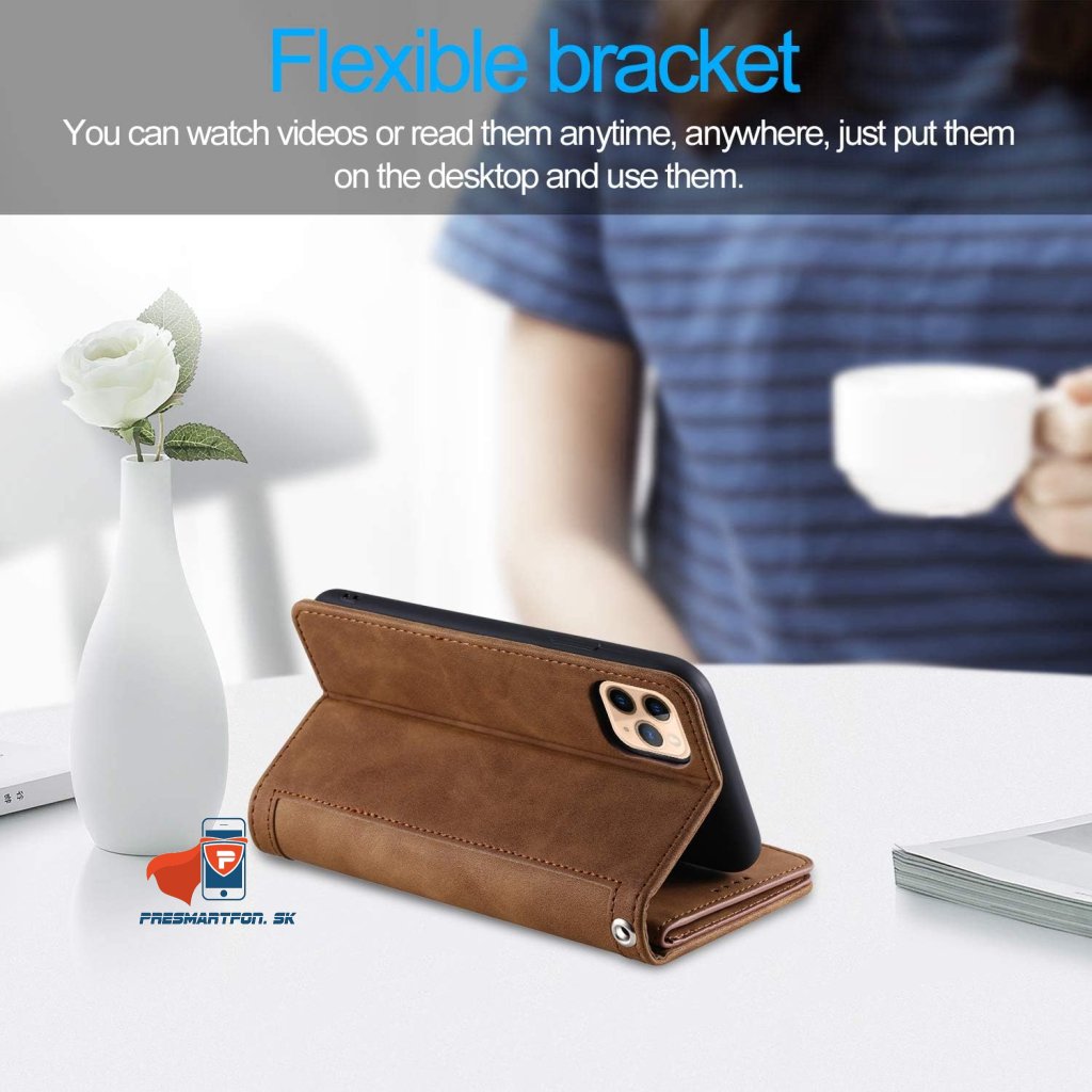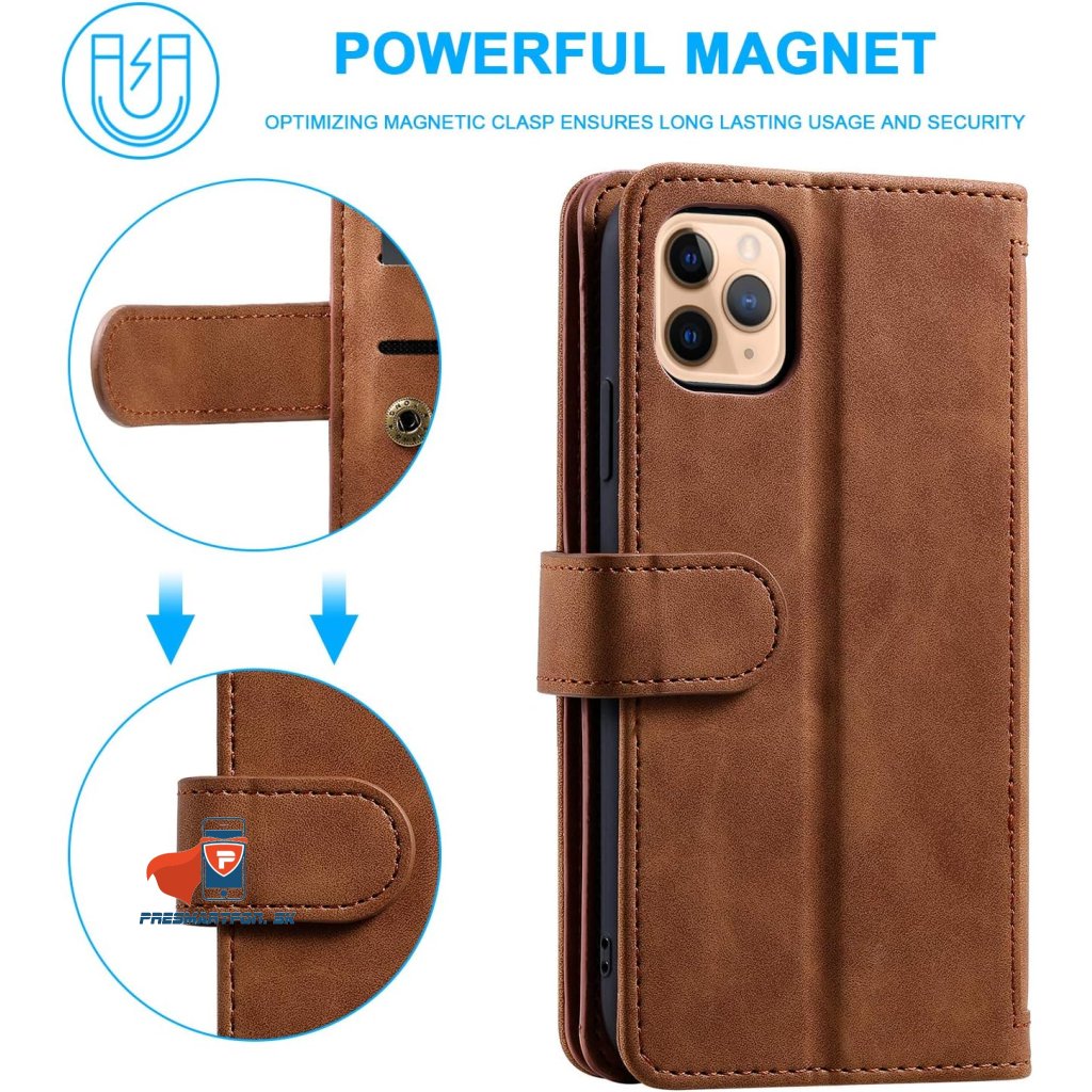 iPhone 14 Pro Max kožené púzdro peňaženka hnedé