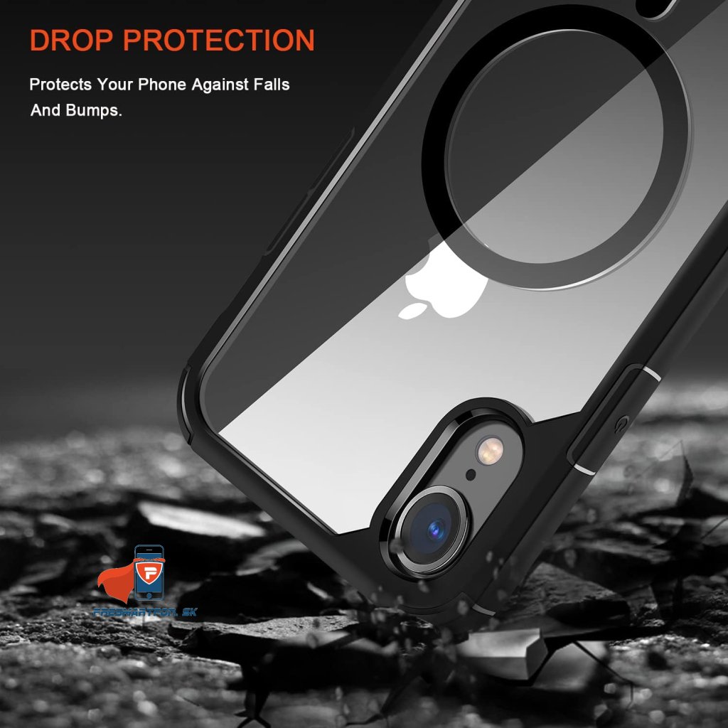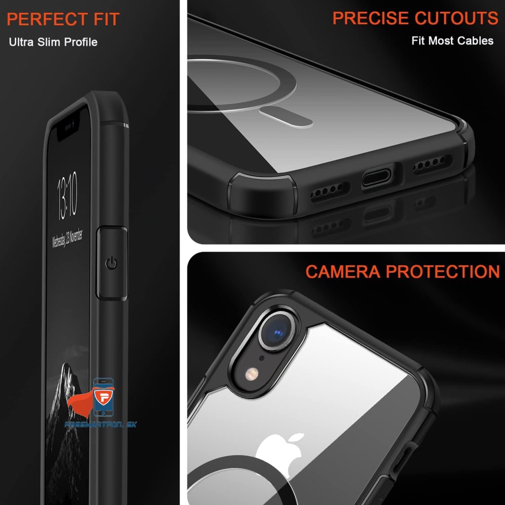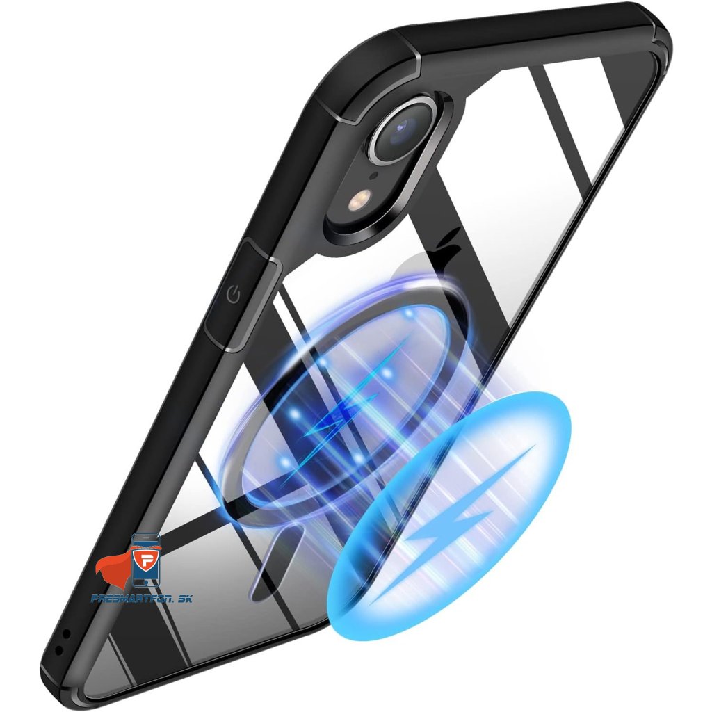 iPhone XR zadné púzdro MagSafe priehľadné s čiernym lemom Ochranné sklo ZADARMO
