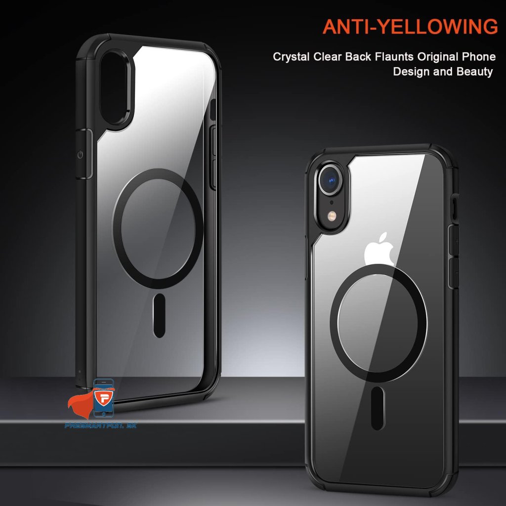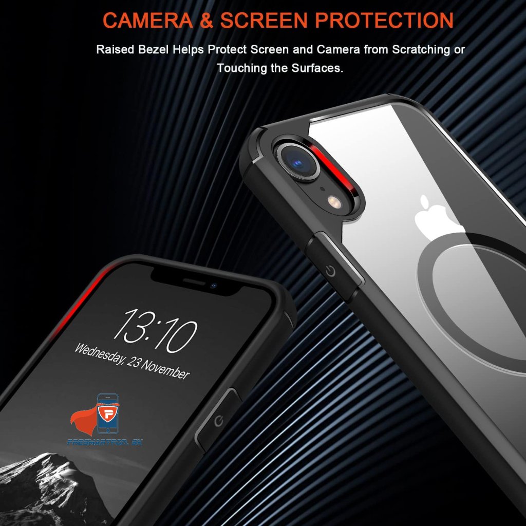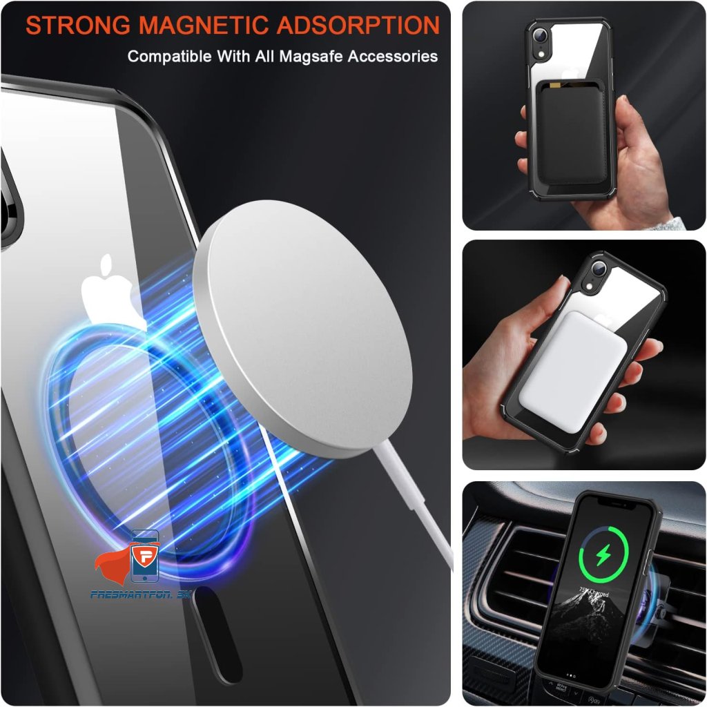 iPhone XR zadné púzdro MagSafe priehľadné s čiernym lemom Ochranné sklo ZADARMO