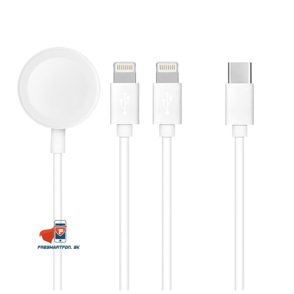 3v1 Typ C Kábel 2 x Lightning / Apple Watch 3W 2A C3168 1.2m Biela