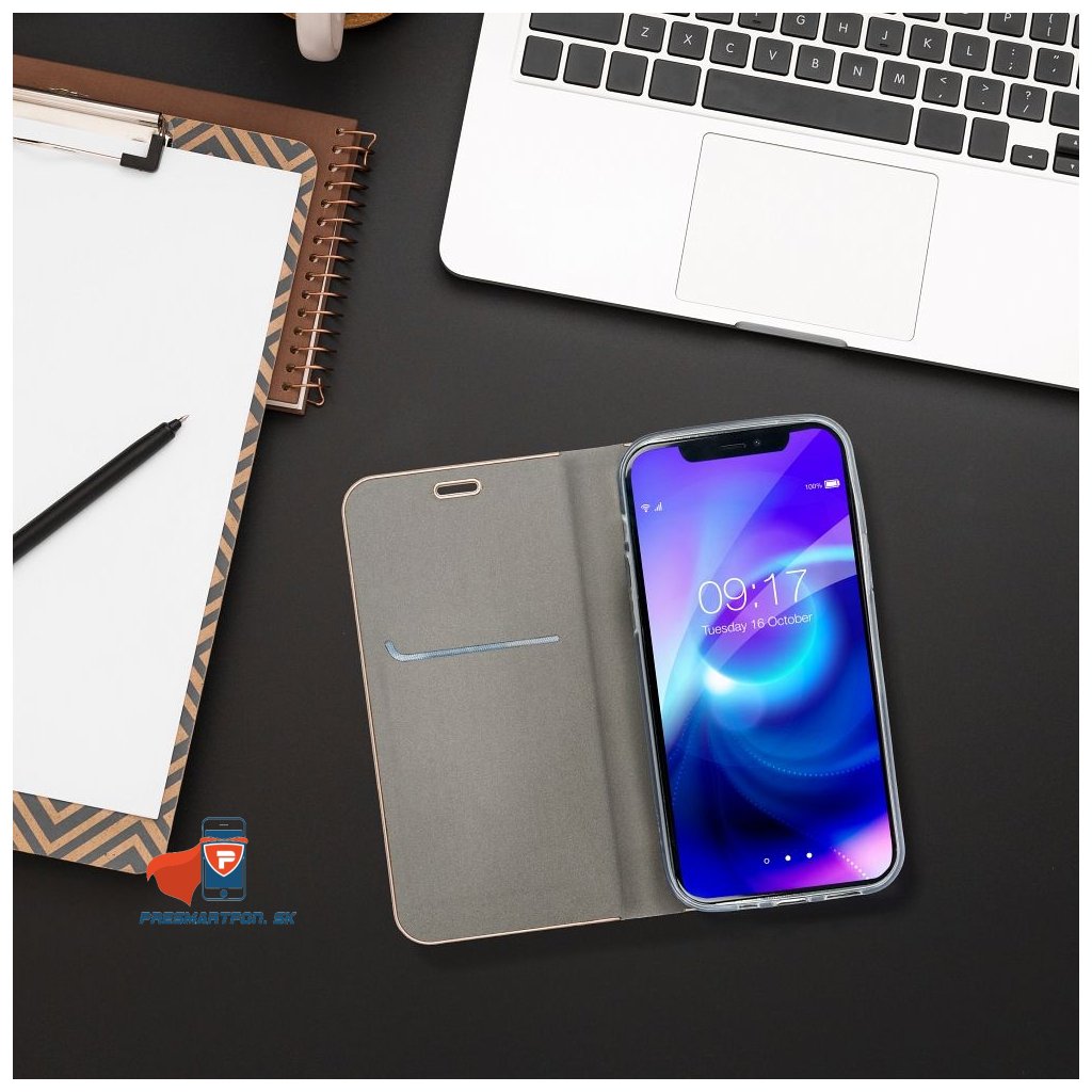 Veľmi elegantné a štýlové puzdro. Najvyššia kvalita a zmysel pre detail ho predurčujú pre výnimočných ľudí. Zapínanie na skrytý magnet zapadá do všeobecných trendov. Vyrobené z najnovšej a najmódnejšej ekologickej kože. Elegantný dizajn zvýrazňuje rám okolo puzdra, ktorého farba je zvolená tak, aby sa celok krásne prezentoval. Vnútro puzdra je vyrobené z mäkkého semišu, ktorý dodatočne chráni displej zariadenia a elegantné vrecko na bankovú kartu.