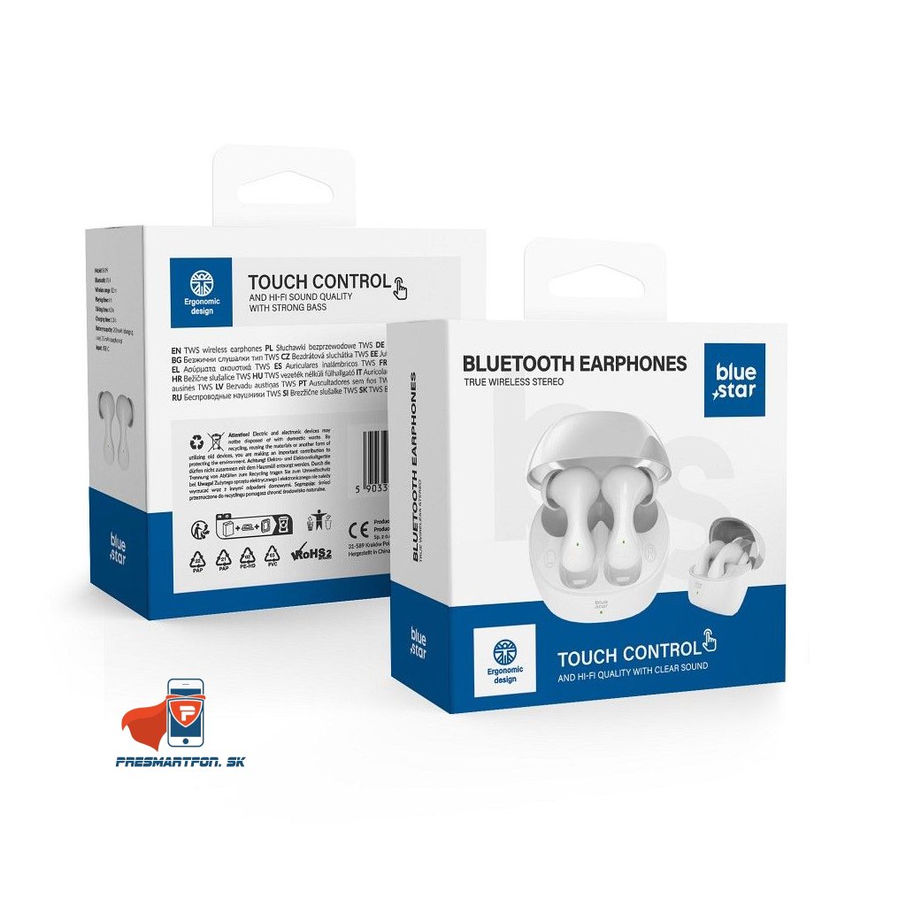 Bezdrôtové slúchadlá do uší Blue Star BK92 TWS, biele