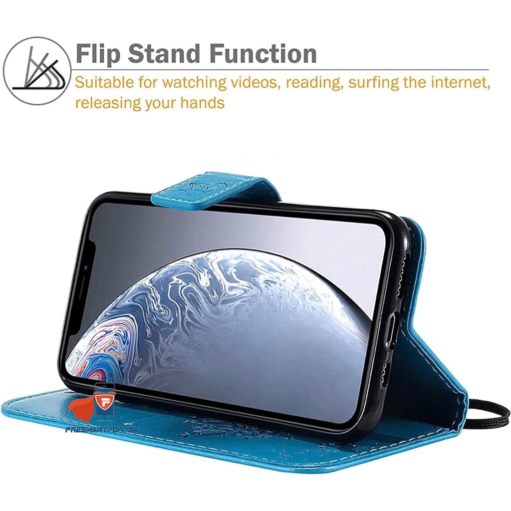 Priehradka na dve karty + bočný priečinok.Materiál eko koža, uchytenie mobilu je silikónové.