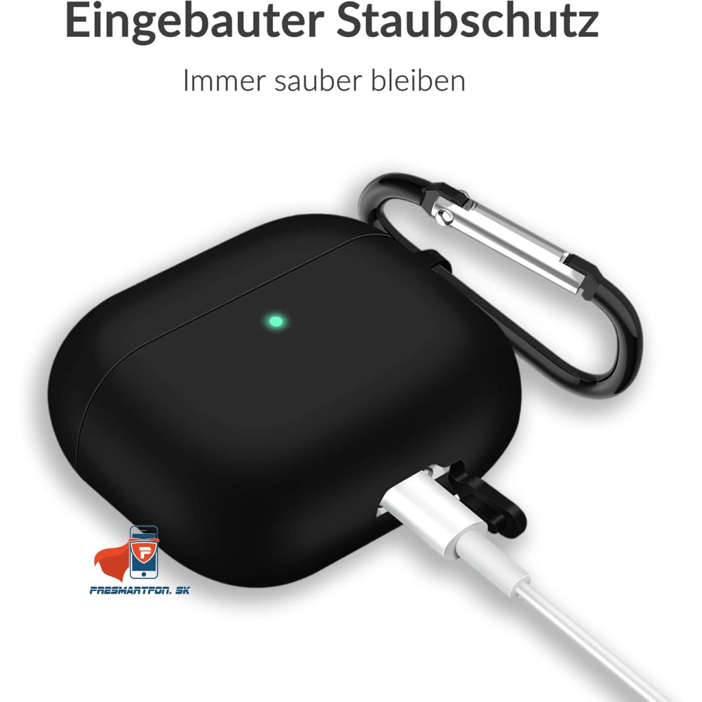 Praktický a štýlový silikónový obal pre Apple AirPods 3 (2021) v elegantnej čiernej farbe spoľahlivo ochráni tvoje slúchadlá pred poškriabaním, prachom aj menšími nárazmi.