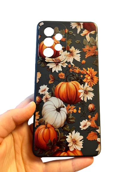 Zadné silikónové púzdro s nádychom jesene s potlačou tekvíc a kvetov.