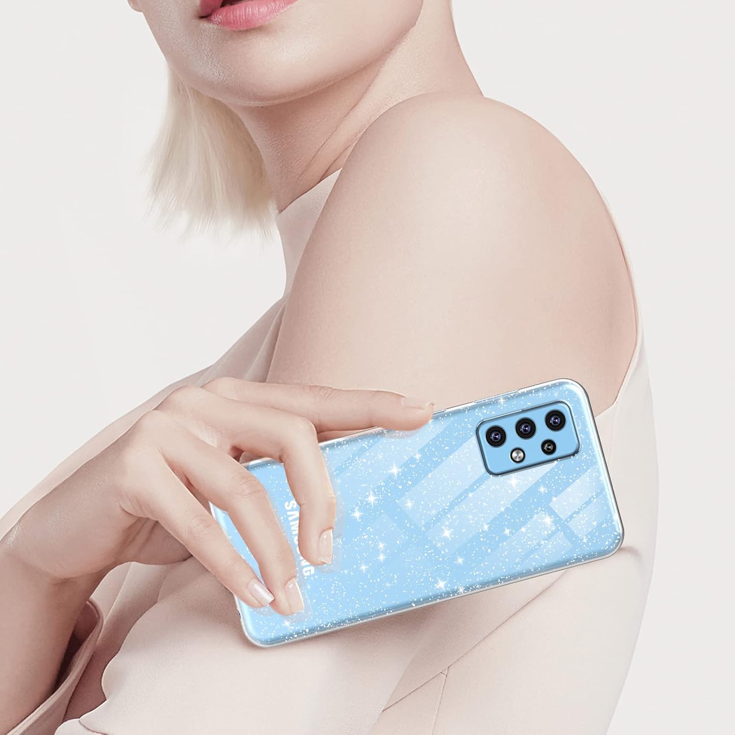 Zadné silikónové púzdro, priehľadné, so striebornými trblietkami.