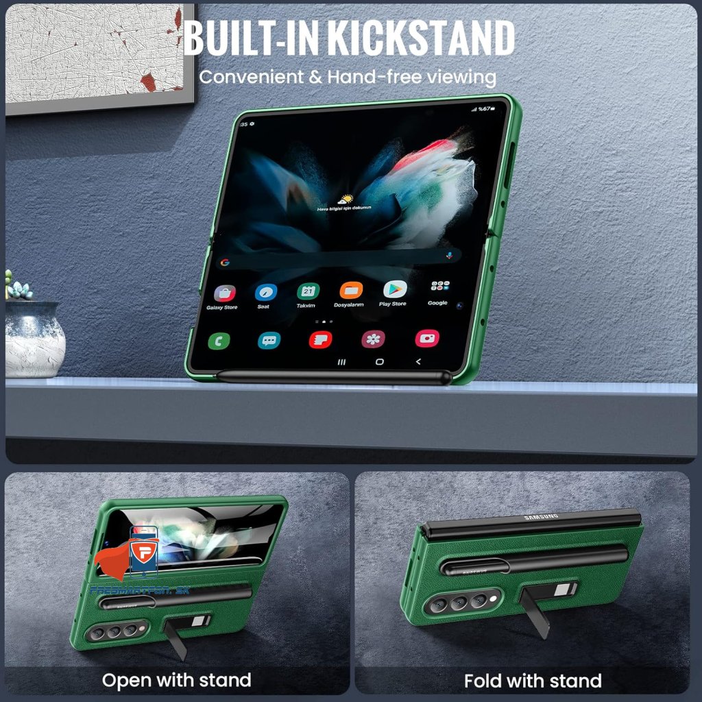 Samsung Galaxy Z Fold 4 Púzdro je vybavené odnímateľným slotom S-Pen na suchý zips. Pero nie je súčasťou balenia.Aby suchý zips držal pevne, treba s krytom pohrkať a posunúť zips zo strany na stranu, aby lepšie zapadol.Magnetický stojan.Materiál: tvrdené TPU s ľahkým ale odolným dizajnom. V balení je aj ochranné sklo na obrazovku.